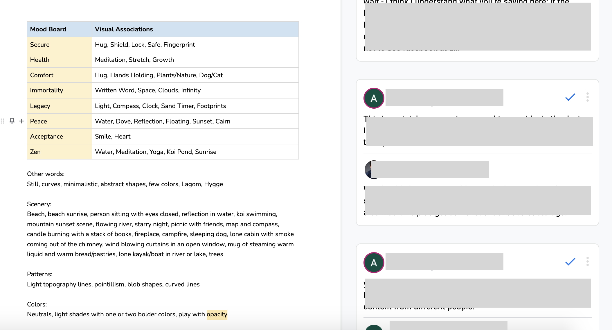 Example of a working stream of consciousness collab notes with the team